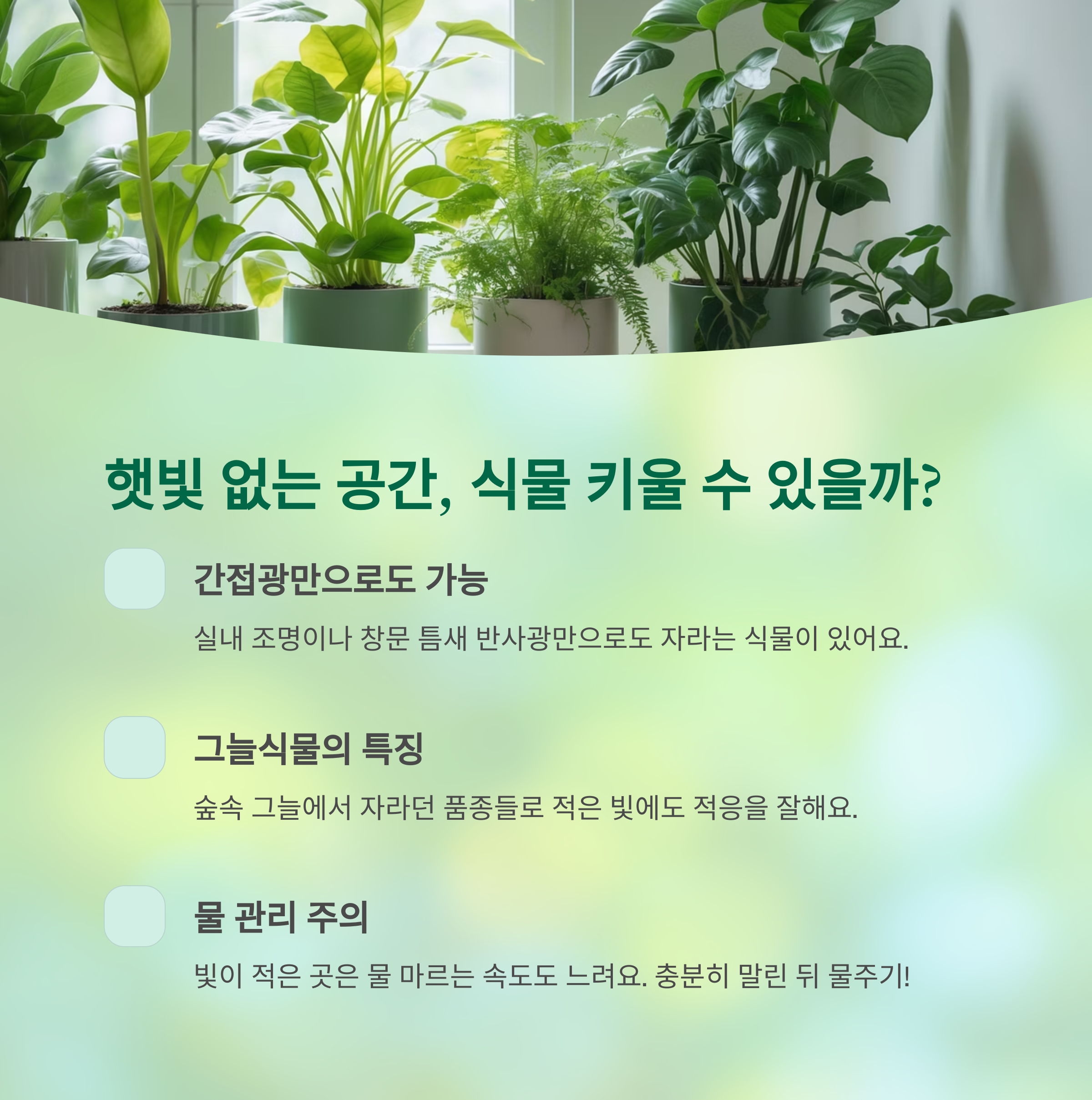 🌑 햇빛 없는 공간, 식물 키울 수 있을까?